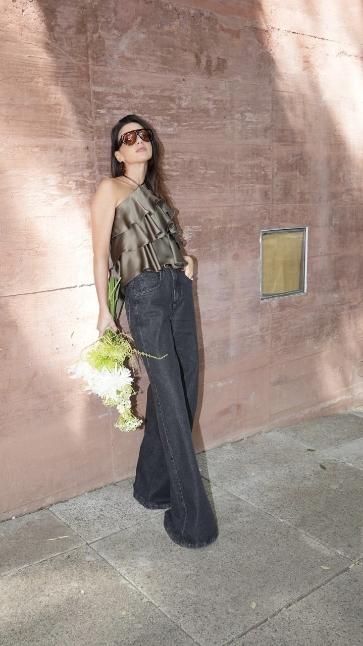 Calça Jeans Palazzo Black é a peça que faltava no seu guarda-roupa! Confeccionada em jeans 100% algodão, ela oferece conforto e durabilidade, além de um caimento impecável que valoriza a silhueta.